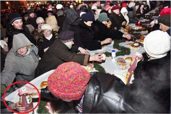 12월 16일 폴란드 라돔에서 열린 크리스마스 행사장이었다. 라돔(Radom)은 폴란드 중부지방에 있는 인구 22만명의 도시이다. 도심 광장에 시민들이 무료로 먹을 수 있도록 길쭉한 탁자에 빵과 음료수 등을 놓아두었다.