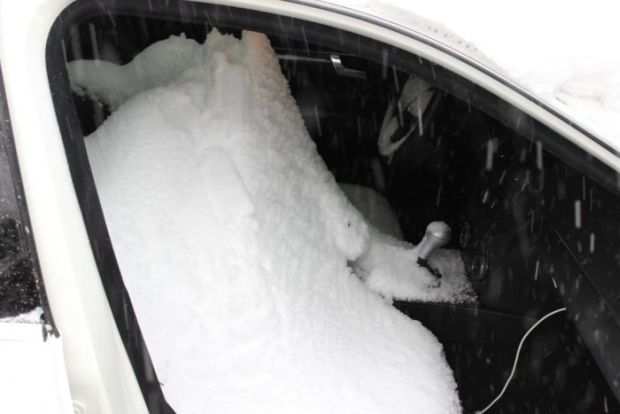 겨울철에는 거의 사용할 일이 없는 천장 유리창(선루프 sunroof, 혹은 문루프 moonroof)이다. 주차하러 오기 전에 환기시킨다고 열였다가 닫기를 잊어버리면 도난 위험뿐만 아니라 이런 큰 낭패를 당할 수가 있다. 바로 밤새 눈이 자동차 내부로 내릴 수 있기 때문이다. [사진출처 image source link]