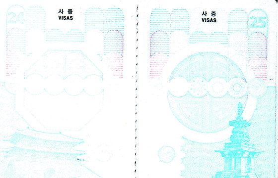 나라마다 여권도 다르고 그 안에 그려진 문양도 다르다. 먼저 한국 여권의 속지를 보자. 짝수 쪽 하단에는 남대문, 홀수 쪽 하단에는 다보탑이 있다. 가운데에는 각각 다섯 개의 원형으로 된 문양이 있다.