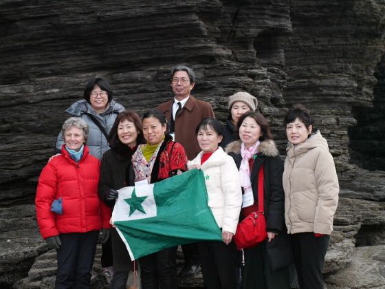 ▲ Esperantistoj vizitis la eksan ĉefmajstron Ĝŭasan, kiu estas konata kiel fervora pledanto por Esperanto.