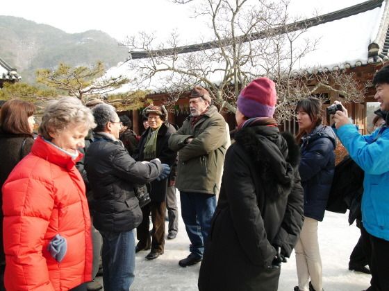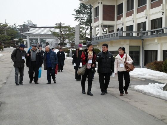 Oni ne nur meditis, sed ankaŭ ekskursis. La renkontiĝejo situas en la tereno de la centra sidejo de ŭonbulismo, en kiu troviĝas diversaj religiaj konstruaĵoj. Perpieda ekskurso tra la tereno donis la ŝancon pli konatiĝi kun ŭonbulismo kaj ĝia historio. Dum la duontaga ekskurso oni ĝuis neĝkovritan belegan pejzaĝon en kaj ĉirkaŭ la budhana templo Nesosa. Sekve oni admiris la nekutiman klifon Ĉesokgang konsistantan el sedimenta rokaĵo, kies rokaj tavoloj estas surmetitaj unu sur la alia kvazaŭ kuŝantaj libroj. Post la ekskurso tre bongustis loka rizokaĉo kun konkuloj en la vespera bankedo.