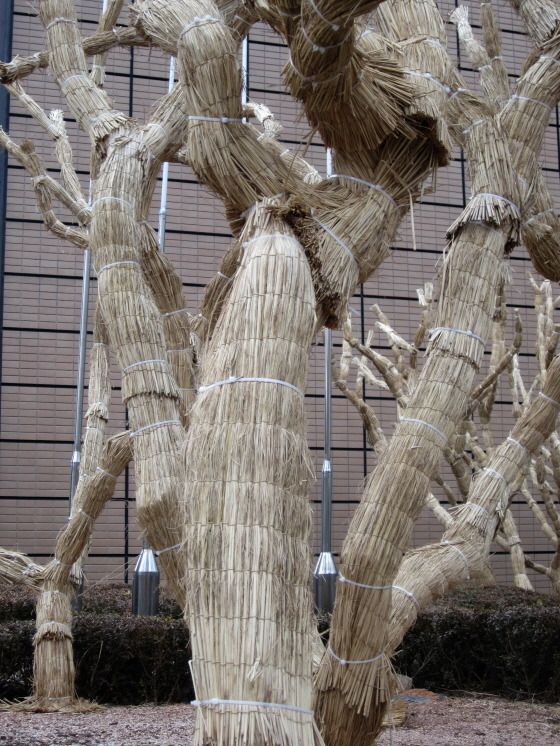 한국인들은 얼마나 지극히 나무를 사랑하기에 나무가 아니라 짚 조각품으로 착각하게 만든다. 사정을 모르는 사람에게 짚 조각품이라고 말해도 쉽게 믿을 수 있을 것 같다. 저 짚 속에는 과연 어떤 나무가 겨울을 보내고 있을까......