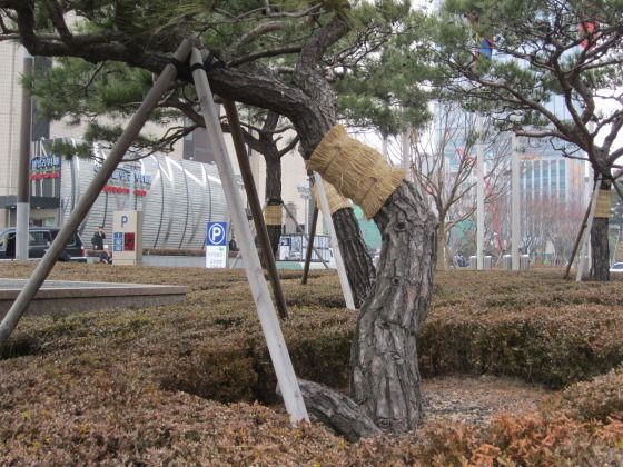 이번 한국 방문에서 잠시나마 서울 광화문 거리를 산책해보았다. 짚을 두른 소나무가 눈에 띄었다. 누군가 왜라고 물어볼 듯하다.