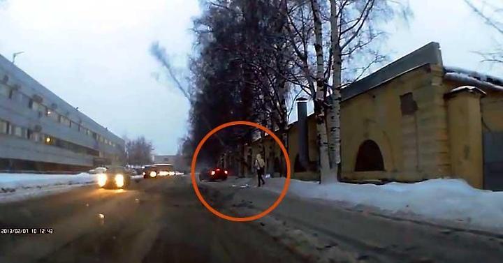 억수록 운 좋은 여성이 화제다. 러시아 페테르부르크에서 자동차 블랙박스 카메라에 찍힌 동영상이다.