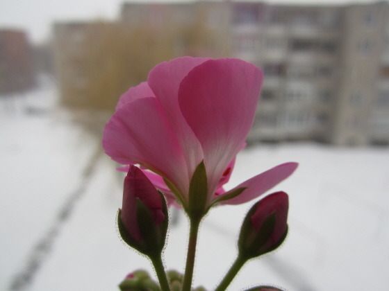 부엌 창가에 핀 실내 꽃으로 위안을 삼아야 했다.
