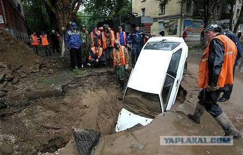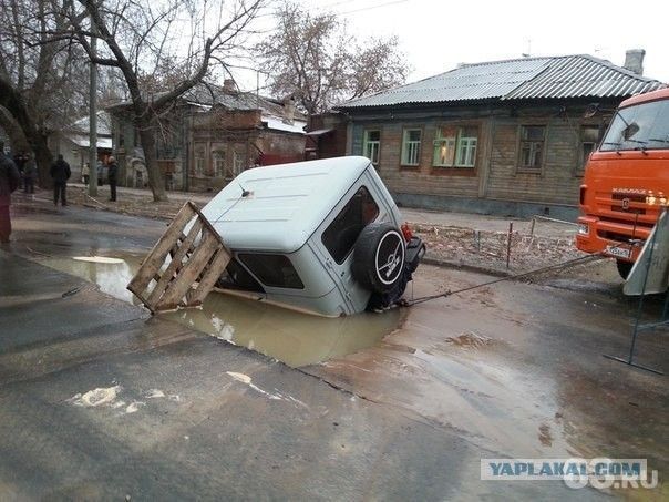 겨울 내내 쌓인 눈이 이제야 조금씩 녹고 있다. 도로에는 물이 곳곳에 고여 있다. 그 깊이가 어느 정도인지 알 수 없을 않을 때에는 건너기가 주저 된다. 이유는 바로 아래 러시아 도로가 잘 말해 준다.