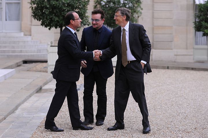 다음은 2012년 10월 10일 프랑스 프랑쑤아 올랑드가 대통령과 악수하는 빌 게이츠 모습이다.