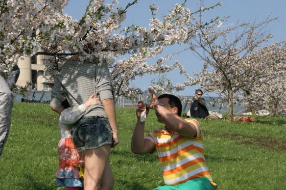 벚꽃을 배경을 기념 사진을 찍는 사람들이 즐비하다. 얼굴만 다를 뿐이지, 서울의 벚꽃 축제에 온 듯한 착각을 불러일으킨다.