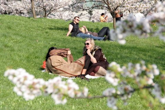 ▲ 벚나무 곁에서 일광욕을 즐기는 빌뉴스 시민들