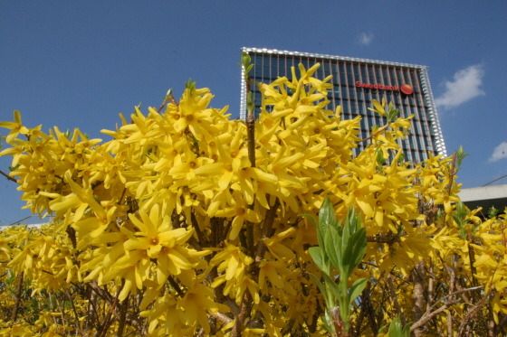 한편 4월 중하순경 도심 곳곳에 피는 개나리꽃이 있다. 이 꽃은 자생이 아니라 관상용으로 심은 것이다. 그래서 그런지 주변 리투아니아 사람들에게 이 개나리꽃 이름을 아느냐고 물어보며 그냥 노란 꽃이라 답할 만큼 생소하다. 빌뉴스에서 개나리꽃이 한 군락을 이루고 크게 자라는 곳이 고층 건물이 우뚝 솟은 네리스(Neris) 강변이다. 개나리꽃이 피는 철이면 이곳은 많은 사람들이 나와 산책을 한다. 그리고 개나리꽃을 배경으로 사진 찍기를 즐겨한다.