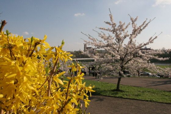 그런데 지금은 이 개나리꽃이 거의 외면당한 듯하다. 왜일까? 개나리꽃보다 더 생소한 꽃이 같은 시기에 그 주변에 피기 때문이다. 무슨 꽃일까? 바로 한국이나 일본 등지에서 피는 벚꽃이다. 이곳에 벚나무가 심어진 사연이 있다.