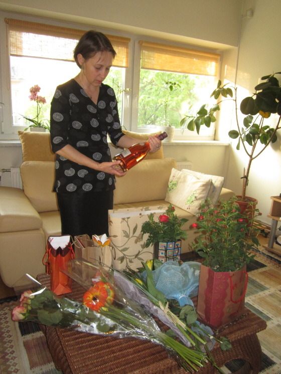많은 꽃다발에 선물상자가 여럿이나 되었다. 열어보니 평소에 비싸서 사기 힘든 샴페인, 초콜릿 등이 들어있었다.