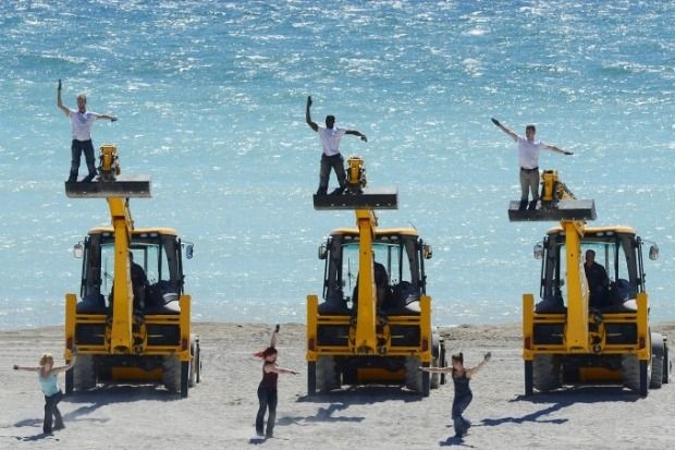 마르세유는 지중해와 프랑스에서 가장 큰 항구이다. 이 도시 프라도 해변에서 5월 10일 이색 쇼가 펼쳐졌다. 굴삭기 3대와 춤꾼들이 함께 펼치는 춤 공연이었다. 굴삭기는 영국 회사가 만든 JCB이고, 춤꾼은 뮤지컬 그룹 "Motionhouse> 소속이다. [사진출처: image source link]