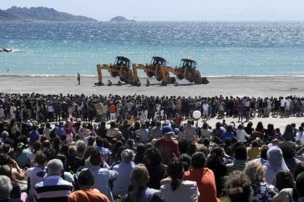 마르세유 해변에 펼쳐진 이색 굴삭기 쇼
