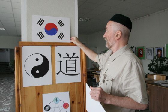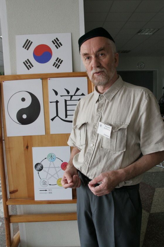 그는 폴란드 수도 바르샤바에 있는 아시아박물관에서 일하고 있다. 이번 일주일 행사에서 동양의 다양한 상징이나 기호들을 참가자들에게 소개하는 전시회를 열고 있다. 특히 이날 태극기 채택일을 맞아 태극기까지 전시하는 세밀함을 보여주어 감동적이었다.