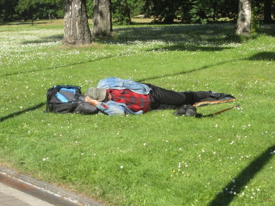 노숙인이 잠자고 있는 풀밭은 어디일까