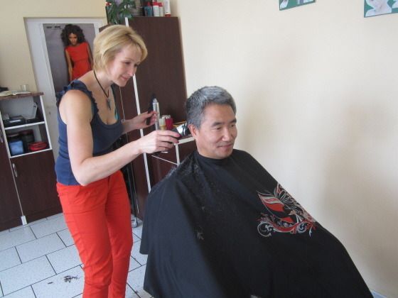 이발할 때에는 나도 모르게 꾸벅 조는 습관이 있다. 그런데 15분만에 끝나는 이런 이발에는 졸 시간도 없었했다. 빠른 손놀림에 감탄을 하다보면 금방 시간이 지나갔다. 우리 남자 셋은 폴란드 시골 여자 이발사의 이발에 모두 만족해 했다.