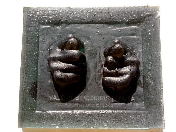 여러 작품 중 눈길을 낯익는 동양인들에게는 저속해 보이는 작품이 하나 있다. 바로 주먹을 쥐고 검지와 중지 사이에 엄지를 끼워넣는 것이다. 이는 한국과 일본 등에서 심한 욕을 상징한다.