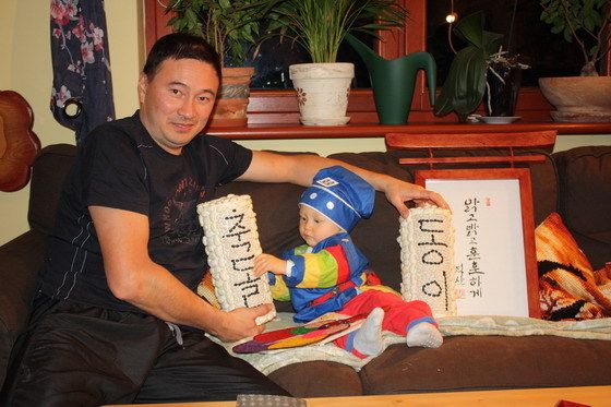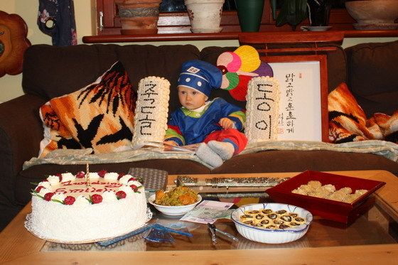 그리고 1년 뒤인 지난 10월 하순 "동이"는 첫 돌을 맞았다. 비록 반쪽 한국인이지만 친구는 아들에게 한국인의 돌잔치 흉내를 내고 싶어했다. 9월에 우리 집을 방문했을 때 그는 돌잔치 상에 놓을 물건들이 무엇인냐고 나에게 물었다. 정말 한국식으로 흉내라도 낼 수 있을까......
