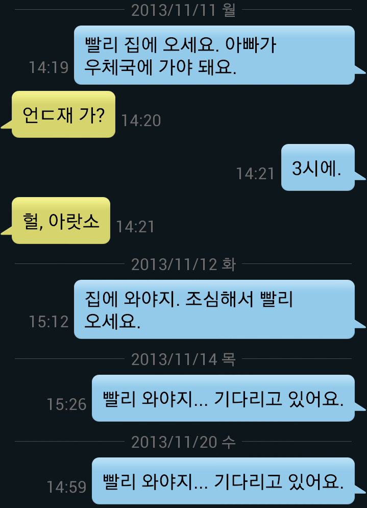 그런데 이제는 딸아이에게 보내는 쪽지의 대부분 내용이 아래와 같다. 빨리 집에 와야지......