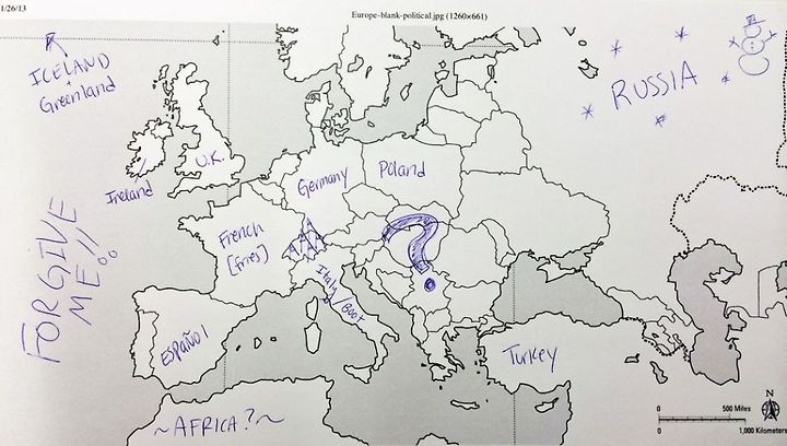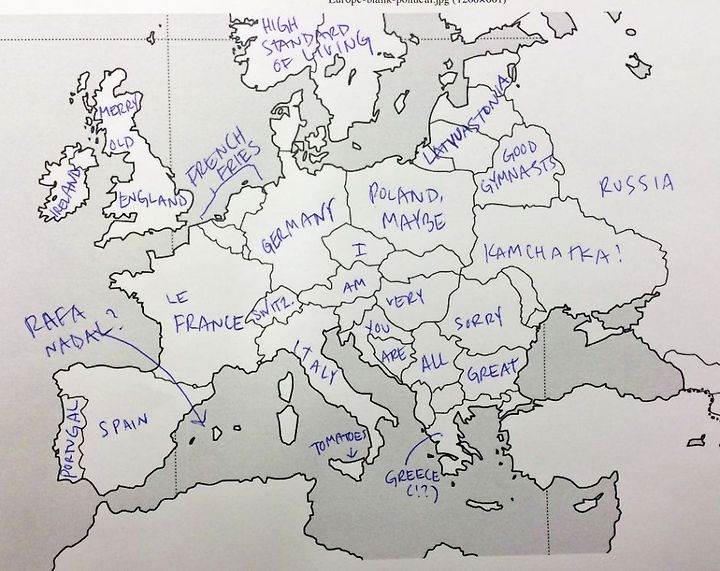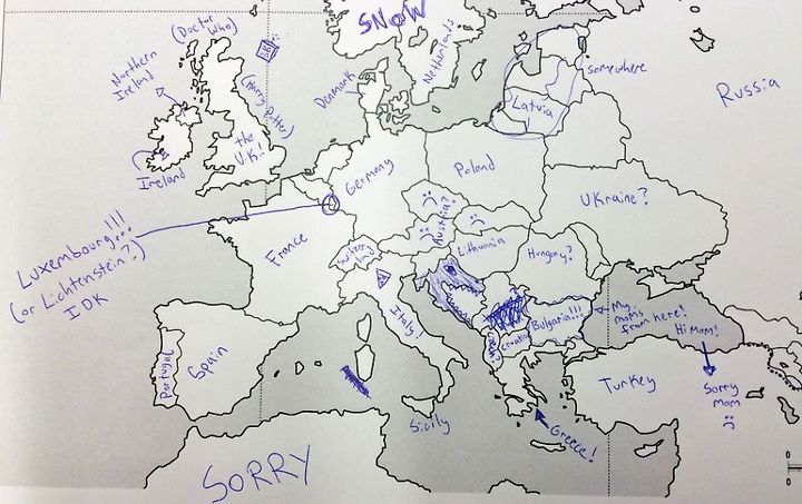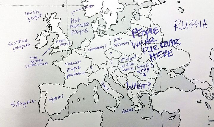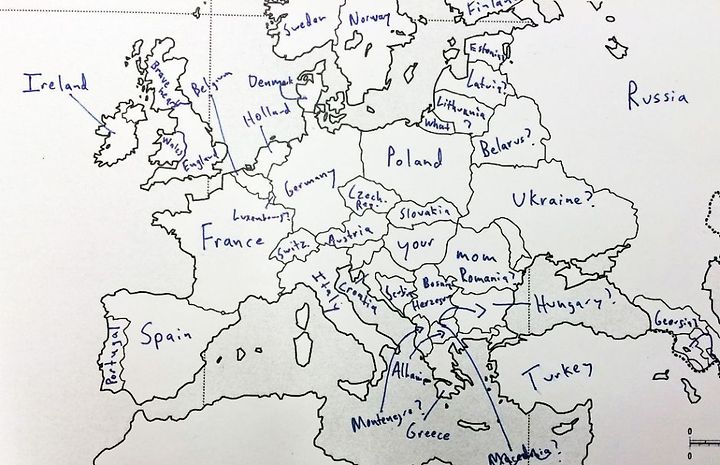 미국인들은 유럽 나라에 대해 얼마나 알고 있을까? Buzzfeed.com이 최근 조사를 실시했다. 미국인들에게 유럽 지도를 주고 어느 나라가 어디에 위치해 있는 지 기재하도록 했다. 그 결과는 어떨까?