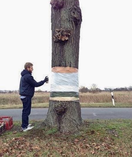 무분별한 과속으로 인한 사고가 빈발한 도로에 있는 가로수를 이런 식으로 공중부양시켜 놓으면 어떨까? 운전자의 호기심을 끌어 속도를 낮추게 하는 방법이 될 수 있겠다.