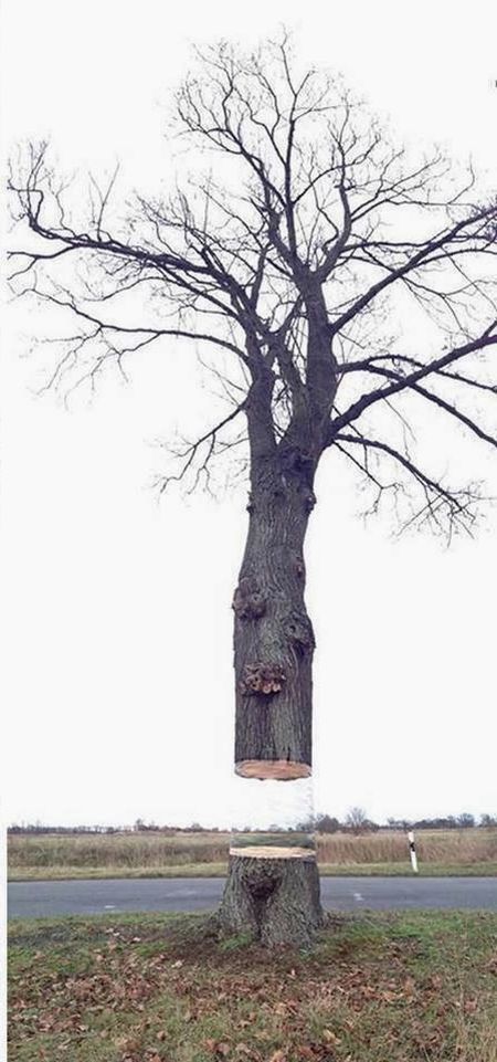 종종 공중분양된 나무를 인터넷에서 접할 수 있다. 최근 폴란드 누리꾼들 사이에 공중부양 나무가 화제를 끌었다. 정말 나무가 스스로 공중부양된 것일까? 답은 "아니다"다.[사진출처 image source link]