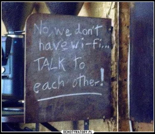 "우리는 와이파이가 없어요. 서로 대화하세요."