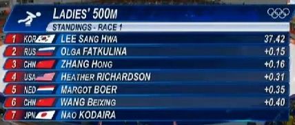 기대했던 이승훈도, 모태범도 한국에 아직 메달을 안겨주지 못했다. 2월 11일 오늘 벤쿠버 금메달 수상자인 이상화 선수가 여자 스피드스케이팅 500m에 출전한다. 이 경기에 한국은 김현영, 박승주, 이보라 선수도 출전한다.