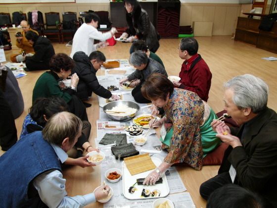 이날 한국인과 외국인이 서로 어울려 김밥을 만드는 광경을 아래 영상에 담아보았다.