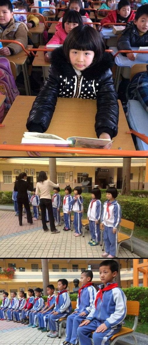 최근 유럽 누리꾼들 사이에 화제가 된 중국 초등학교 교실의 모습이 인상적이다. 한눈에 보기에도 낯설고 우스꽝스럽다. 책상마다 쇠막대기가 설치되어 있어 학생들의 자유분방한 행동을 막고 있다.