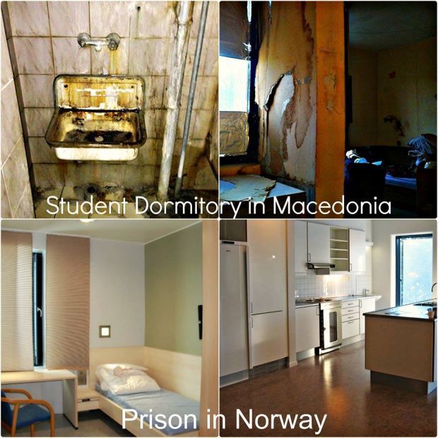 아래는 마케도니아 대학기숙사 내부와 노르웨이 교도소 내부를 비교한 사진이다. 말이 따로 필요 없다.