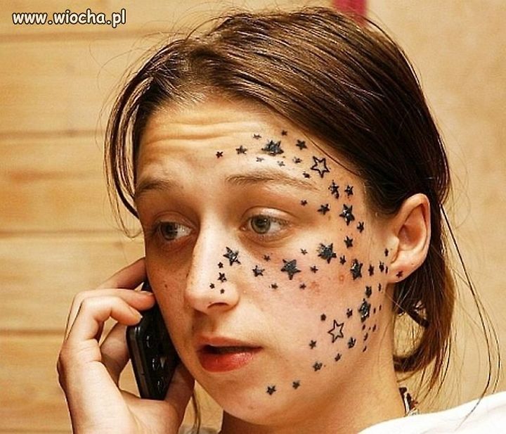 얼굴에 별 문신을 촘촘히 한 여인,