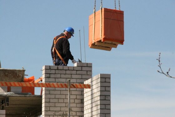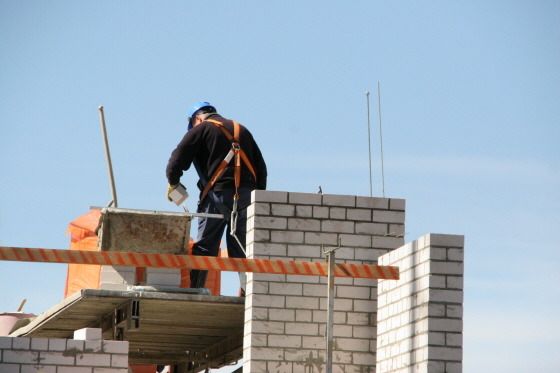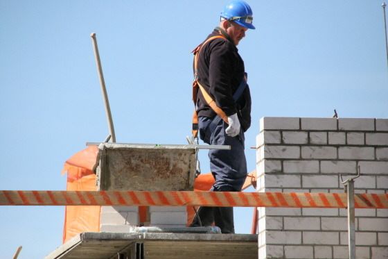 안전띠로 몸 묶고 일하는 건설 근로자