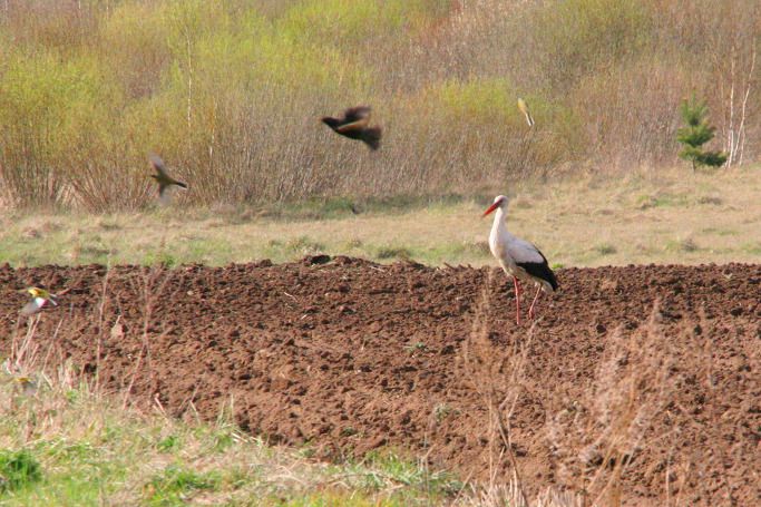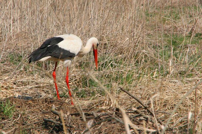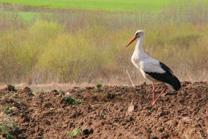 황새는 특히 막 갈고 있는 밭에서 먹이찾기를 좋아한다. 땅속에 있는 벌레들이 자연스럽게 노출되어 쉽게 먹이를 발견할 수 있기 때문이다.