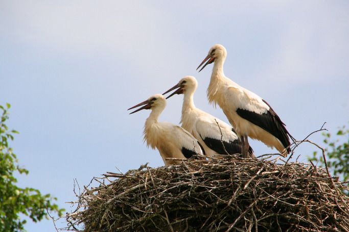 이 둥지의 주인공은 다름 아닌 황새이다. 홍부리황새, 흰황새 또는 유럽황새라 불린다. 부리와 다리는 붉은색. 깃털은 하얀색 그리고 날개 부분은 검은색을 띠고 있다. 주로 동유럽과 발트 3국 등에서 살다가 늦은 여름 무리 지어 아프리카로 떠난다. 사하라 이남부터 남아프리카공화국 등에서 겨울을 보낸다. 장거리를 이동하는 철새다.