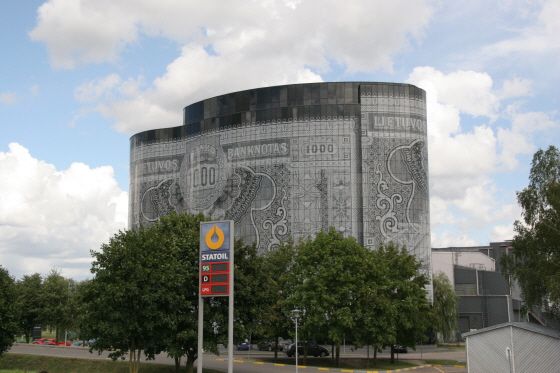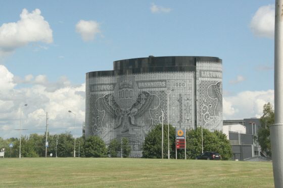 건물 전체가 한 장의 지폐로 이루어져 있다. 이 지폐는 1926년에서 1941년까지 유통되던 리투아니아의 1,000리타스 지폐이다.