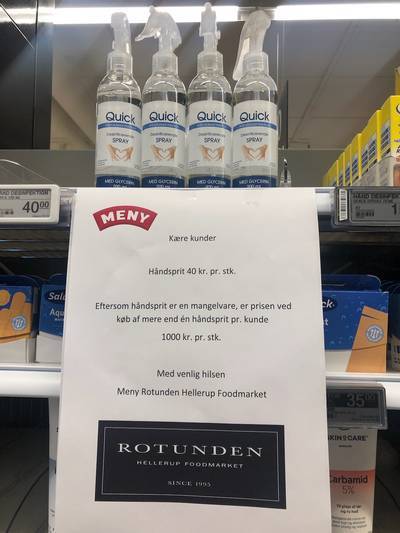 * 손세정제 1병 구입시 1병 가격: 40크로네(7천2백원)