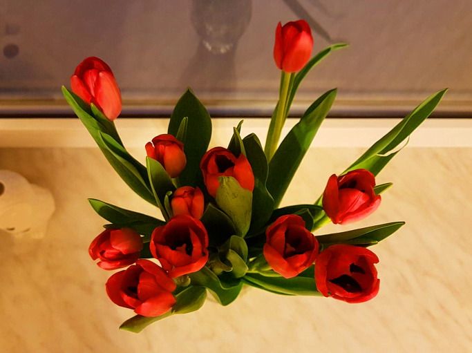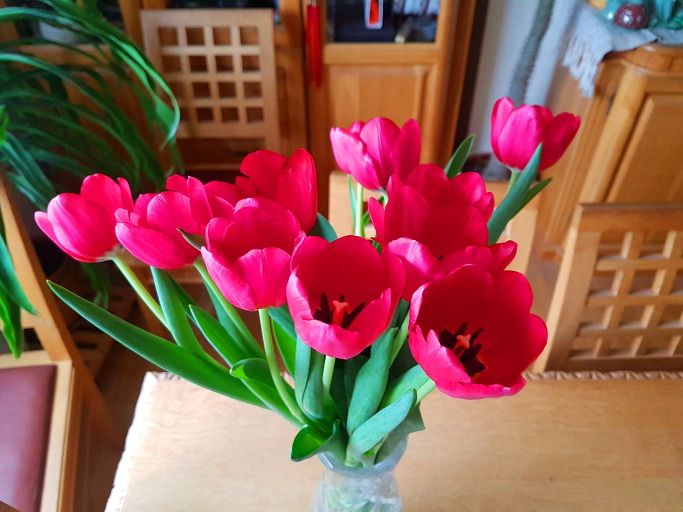 북유럽 리투아니아에서 튤립은 보통 4월 중순에 꽃이 핀다. 창틀 위 꽃병 속 튤립꽃이 봄을 앞당겨 느끼게 해주고 있다.
