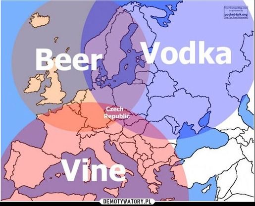 상대적으로 추운 북동유럽은 일반적인 도수가 40도인 보드카이고, 포도가 생산되는 남유럽은 포도주이고, 북서유럽은 맥주임을 쉽게 알 수 있다.