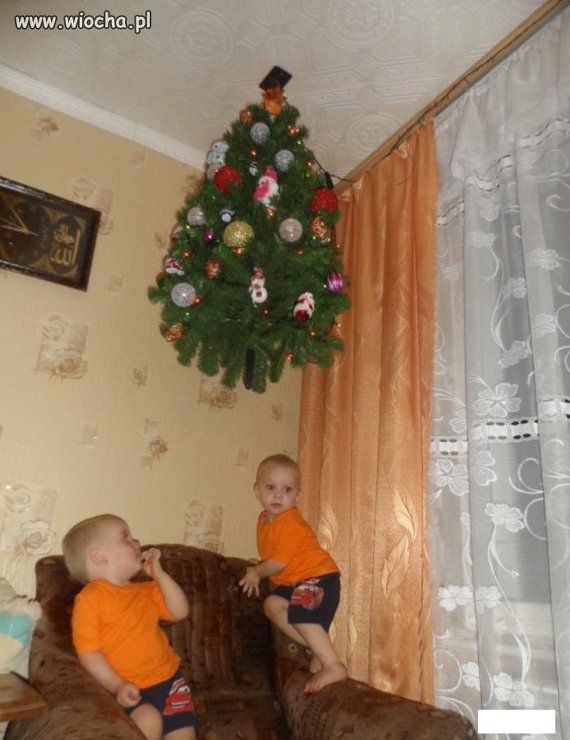 크리스마스 트리의 사진 한 장이 최근 폴란드 누리꾼들 사이에 화제가 되었다. 크리스마스 트리가 바로 세워져 있지 않고 천장에 거꾸로 매달려 있다. 그 밑에는 아이가 두 명 있다. 상황에 어울리는 멋진 발상이다. 이유는 설명하지 않아도 쉽게 이해가 된다.