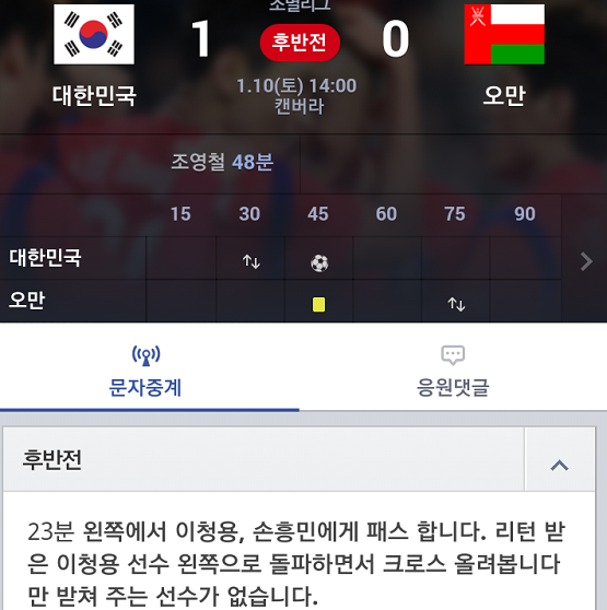 이렇게 해서 보고 싶었던 아시안컵 축구 경기는 텔레비전을 통해 시청은 하지 못했다. 인터넷 실시간 뉴스나 문자 중계를 통해서 무미건조하게 소식을 접했다.