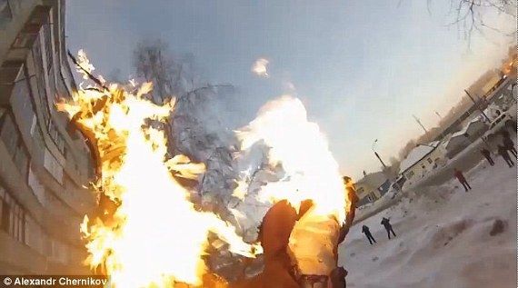 담력 지존, 몸에 불지르고 9층에서 뛰어내려