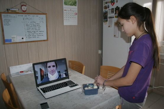 영국에 있는 있는 언니가 스카이프로 요가일래의 요리 과정을 지켜보고 있다.