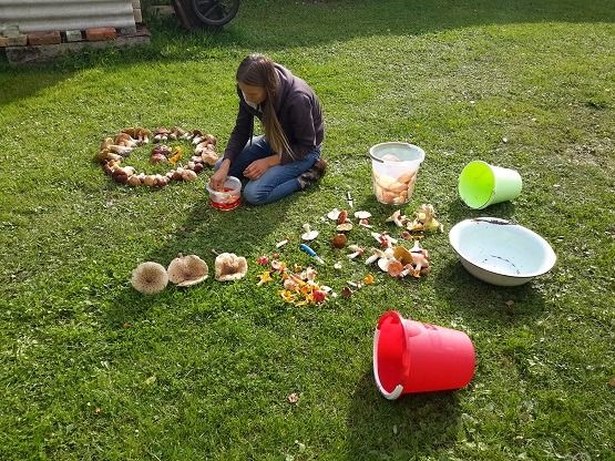 딸이 채취한 버섯을 종류별로 가지런히 정리하고 있다. 그물버섯, 달걀버섯, 살구버섯...