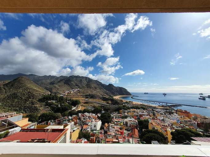 꼼짝없이 숙소에서만 머물러야 한다. 숙소에서 바라보는 풍경이다. 저 해수욕장이 라스테레시타스(Las Teresitas)다. 원래는 검은 모래, 자갈과 바위로 이뤄진 작은 해변이었다. 1968년 해안에서 150미터 떨어진 거리에 1킬로미터에 이르는 방파제를 쌓고 1973년 사하라 사막에서 하얀 모래 포대 400만개를 수입해 해수욕장을 정비했다.