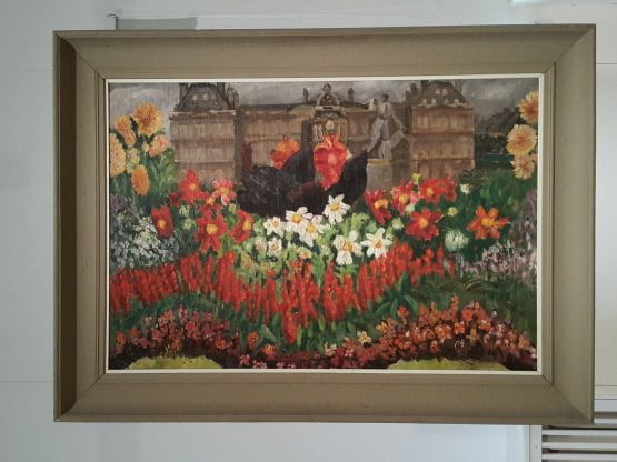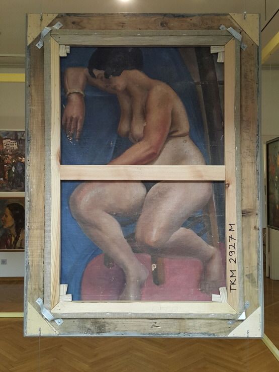 일반적으로 전시되는 앞면은 "꽃 피는 파리" 제목의 꽃 그림(1926-28, 미술작가 Kristjan Teder)이다. 하지만 이 그림 뒤에는 앉아 있는 여인의 모습이다.