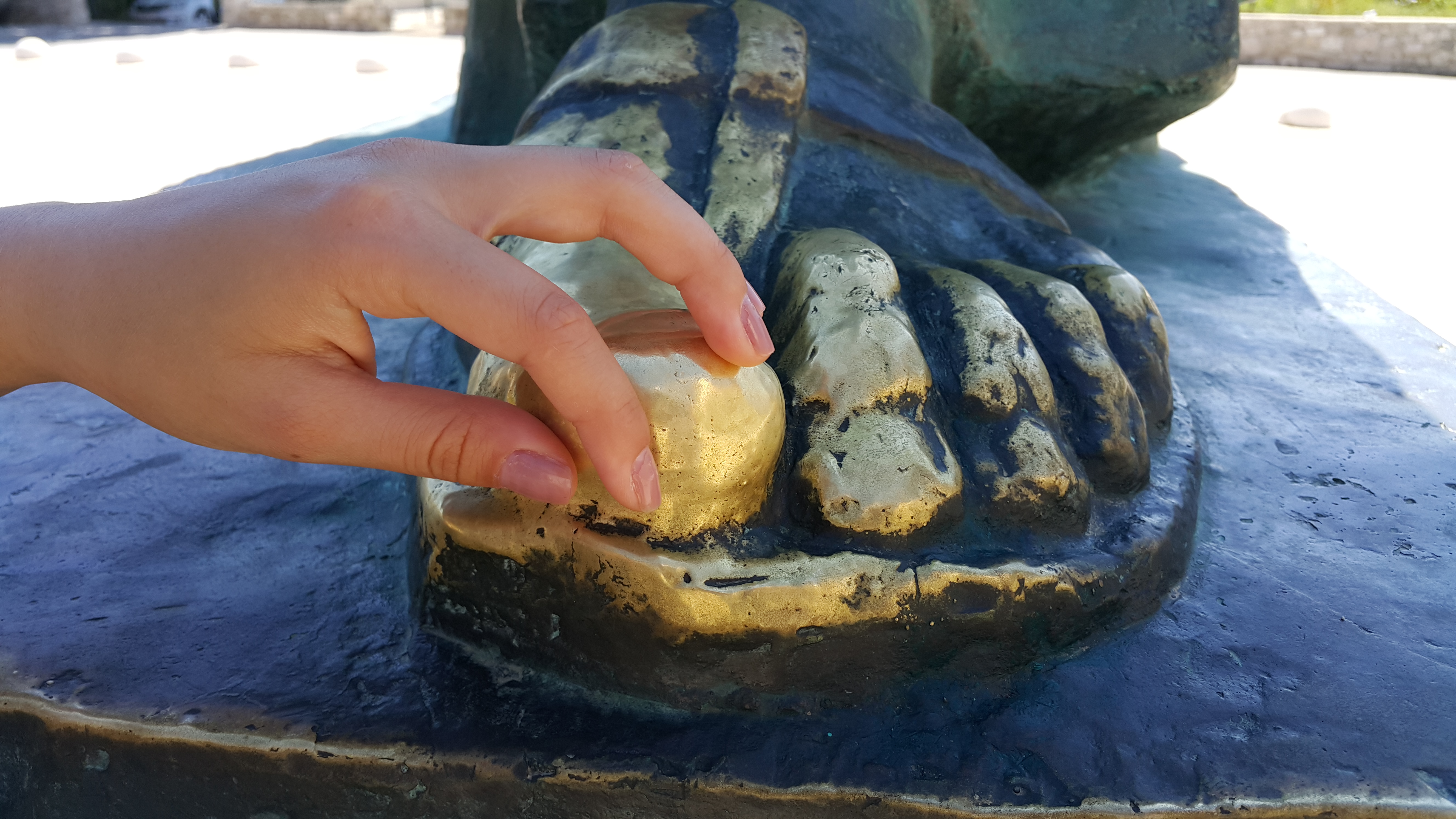 그의 동상 엄지 발가락을 손으로 문지르면 행운을 가져다 준다고 전해진다. 세상에 행운을 바라는 사람들이 얼마나 많은 지 이미 황금색으로 변했다. 누군가 문 지를 때마다 저 황금이 그 사람 지갑 속으로 쑥 들어가면 얼마나 좋을까...