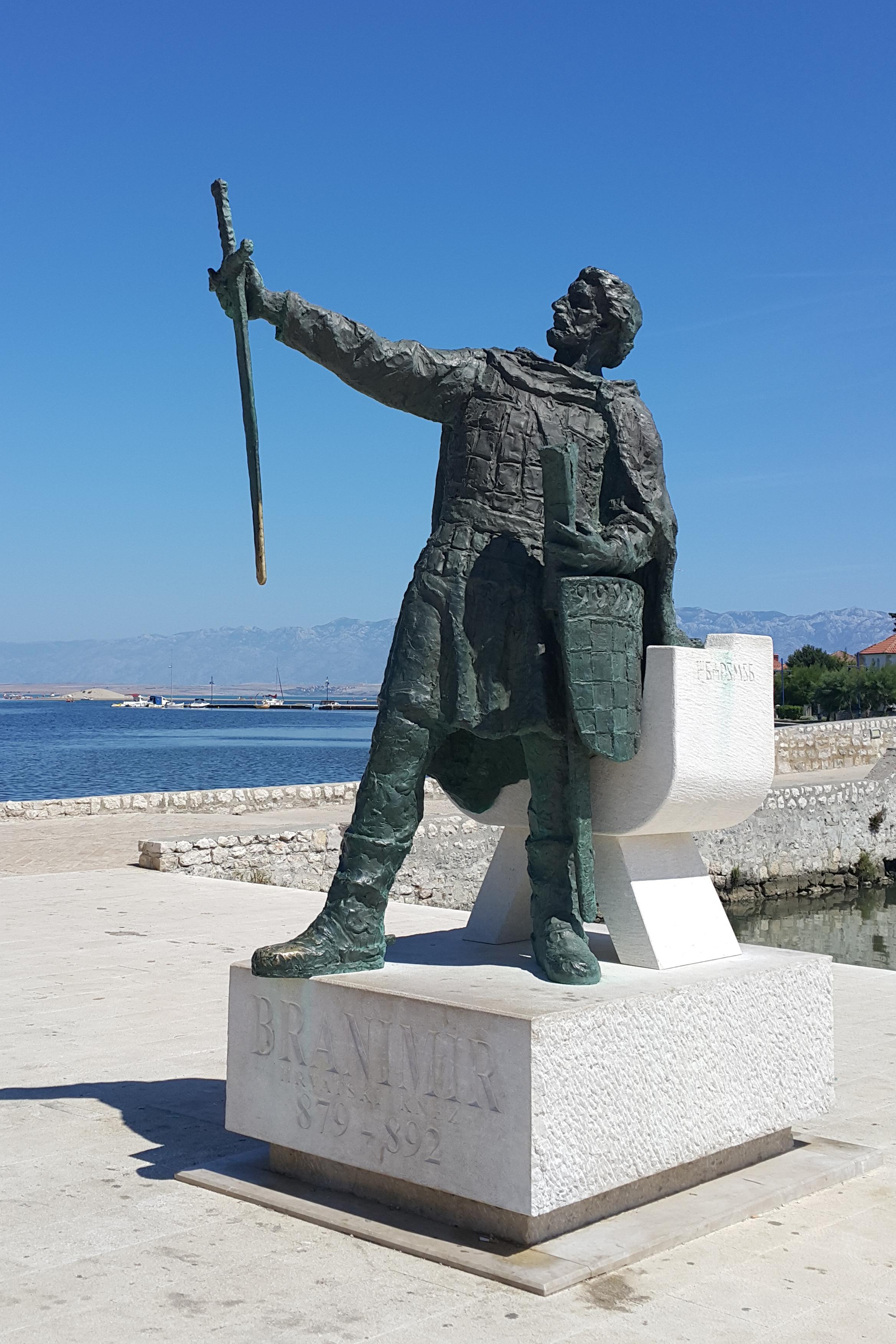 닌 중심이 있는 섬과 육지를 잇는 석교 근처에 오른손을 쭉 뻗어 검을 들고 있는 동상이 나온다. 보기에도 위엄이 넘친다. 크로아티아 역사에 중요한 인물이라 여겨 일단 사진을 찍고 돌아와 누구인지를 검색해봤다. 브라니미르(Branimir)로 879년에서 892년까지 크로아티아를 통치한 공작이다.