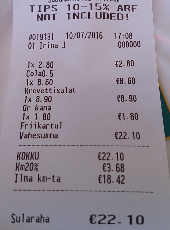 영수증에는 발트 3국에서는 처음 문구가 적혀 있었다.